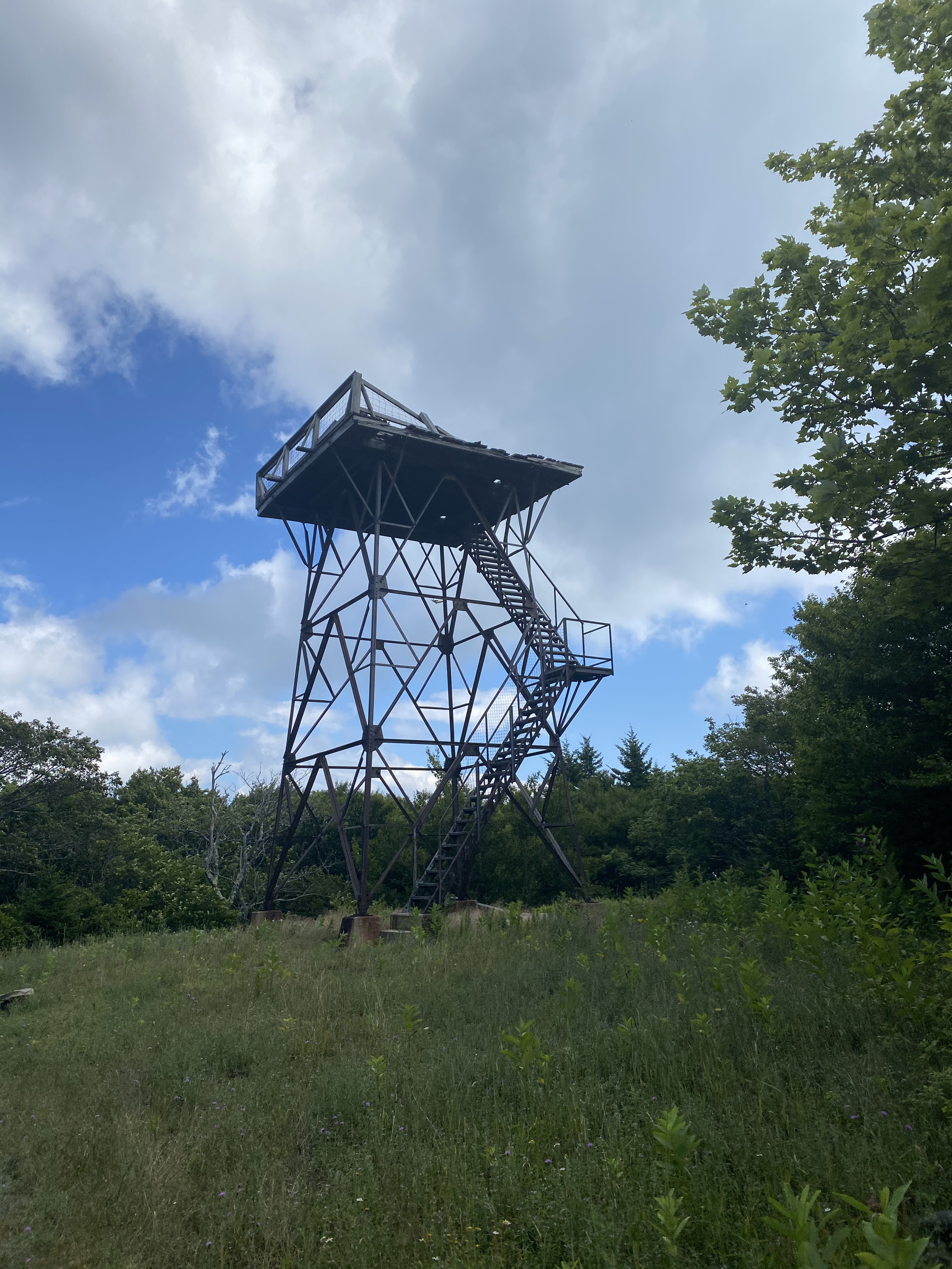 Located high atop the Allegheny Front near Dolly Sods, Bell Knob Fire Tower was built with a wooden cab atop 30' steel legs. It was originally built along Rohrbaugh Plains Trail in 1931 and relocated to this site in 1943.
