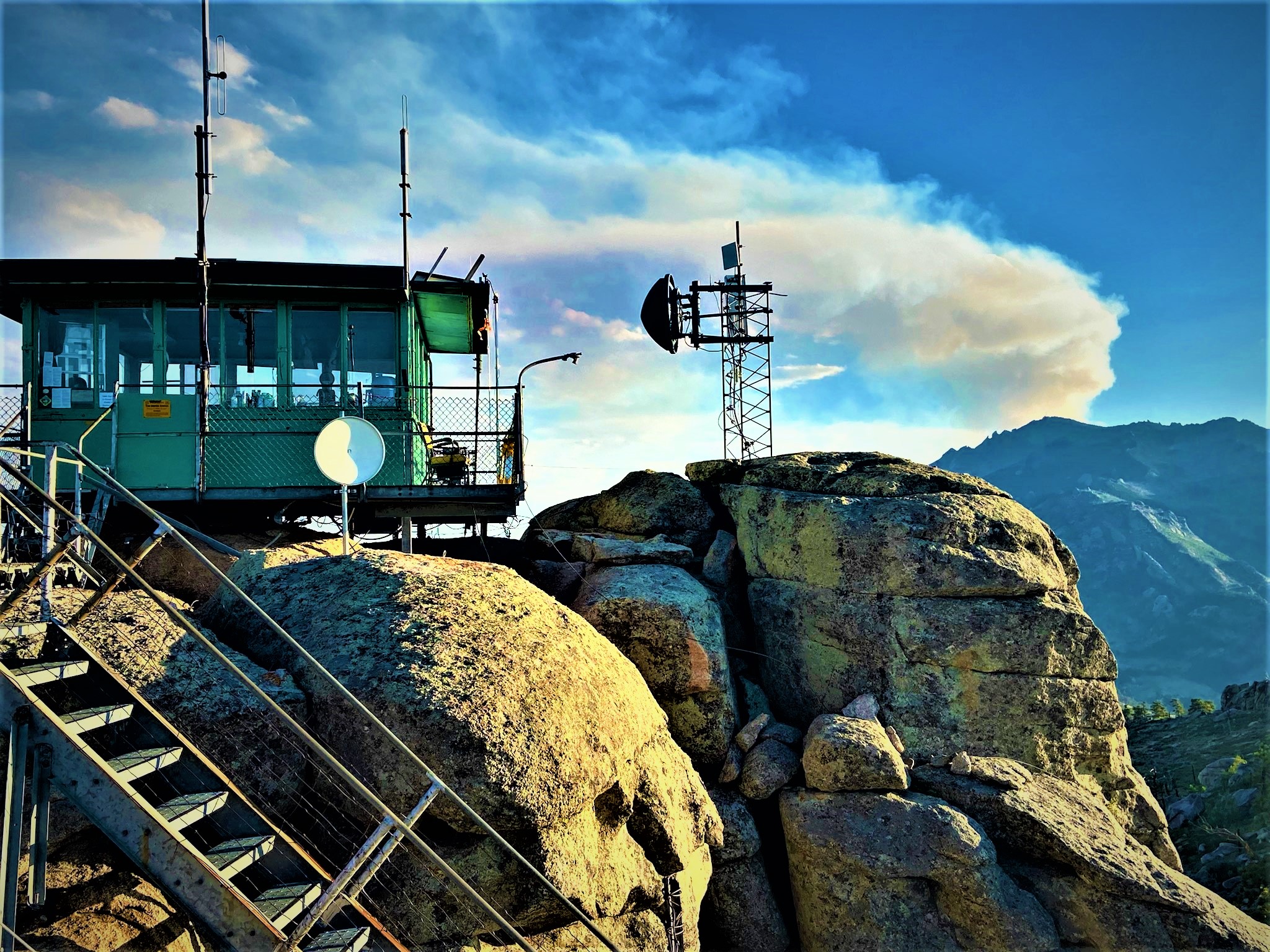 | Comments: | New dishes added to railing for Internet access by local rancher. Mounting dishes to lookout was an exchange for Internet access to ranger station and lookout itself. A solar panel array was added to charge internet system and a bank of about 10 HD batteries. |