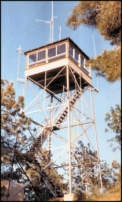 Visible to travelers on I-17 in the Prescott National Forest, Tower Mountain Lookout sits atop a 7590’ mountaintop. Built 70 years ago (1933) it is a 30’ D-2 style Pacific Coast Steel tower with a modified L-4 cab. It continues in active service.